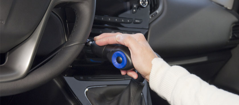 Slider Vertical Hand Control LT12 is placed on the right of the steering column; its placement doesn’t obstruct the airbag opening, keeps all the steering wheel regulations and doesn’t alter the view on the dashboard for those who do not use it.The mechanical parts of the device are placed outside the dashboard: in order for them not to be in the way when entering and exiting the car or loading the wheelchair, they’re fixed as close as possible to the lower side of the dashboard.